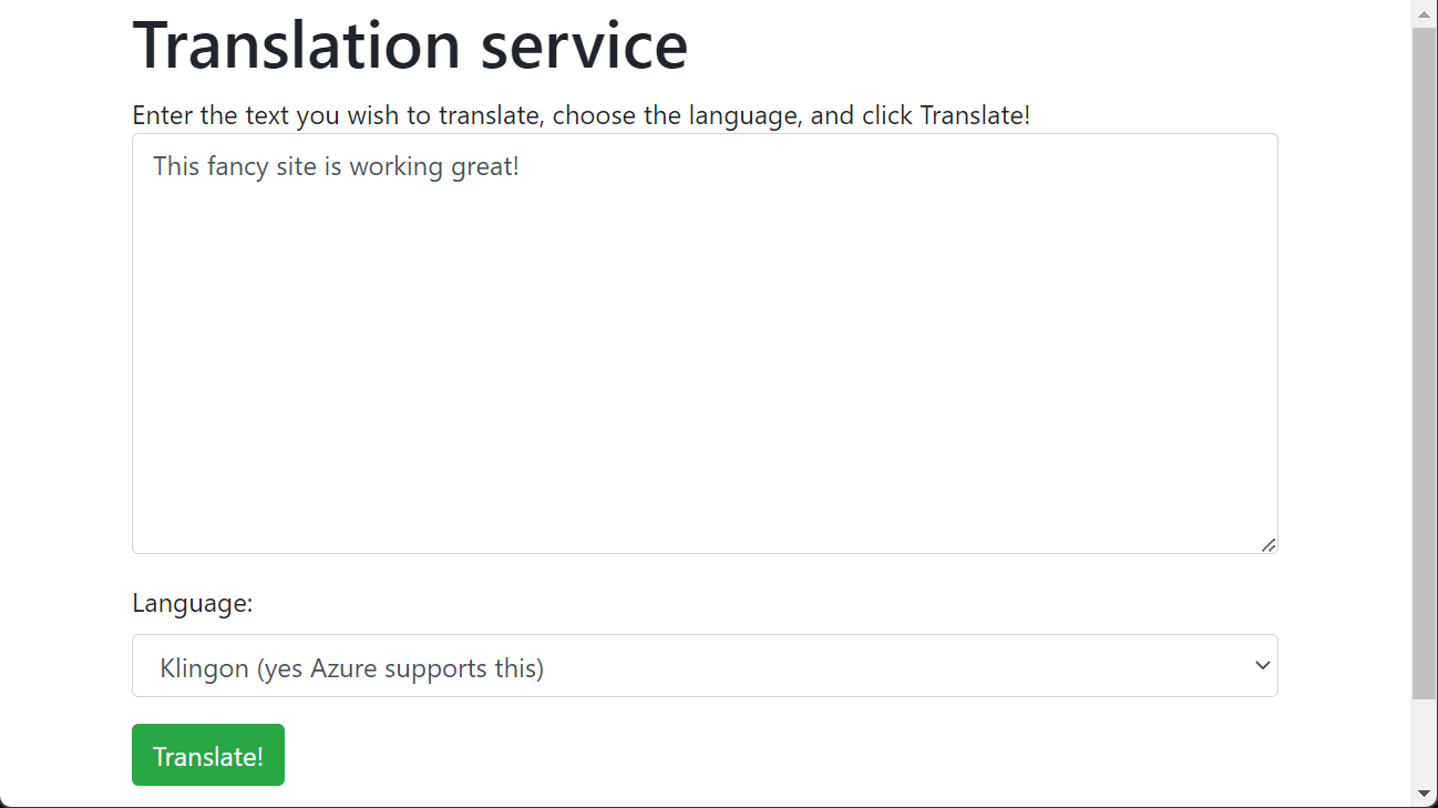 Last but not least, I didn’t know that the translation services in Azure support Klingon, but they do. Apparently Duolingo also offers a Klingon course The world’s best way to learn Klingon - Duolingo. Maybe once I complete the Spanish course I’m taking…