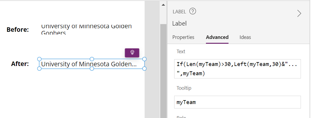 - Use a formula to truncate the Label.Text and add “…” as a visual indicator to the app user that there’s more than what’s shown. `