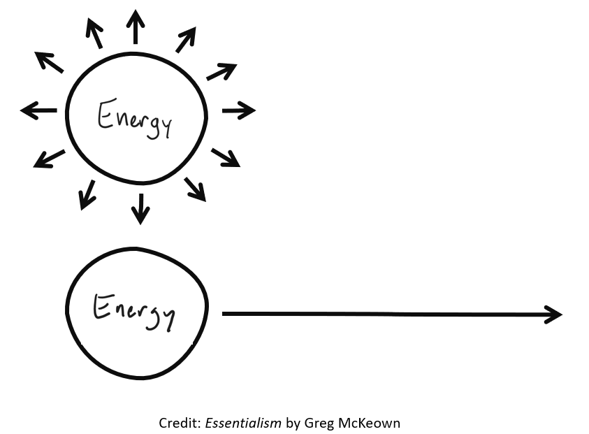 I ran across a simple (but brilliant" visualization of this in Greg McKeown’s book Essentialism - The Disciplined Pursuit of Less, which depicts the power of focusing energy.