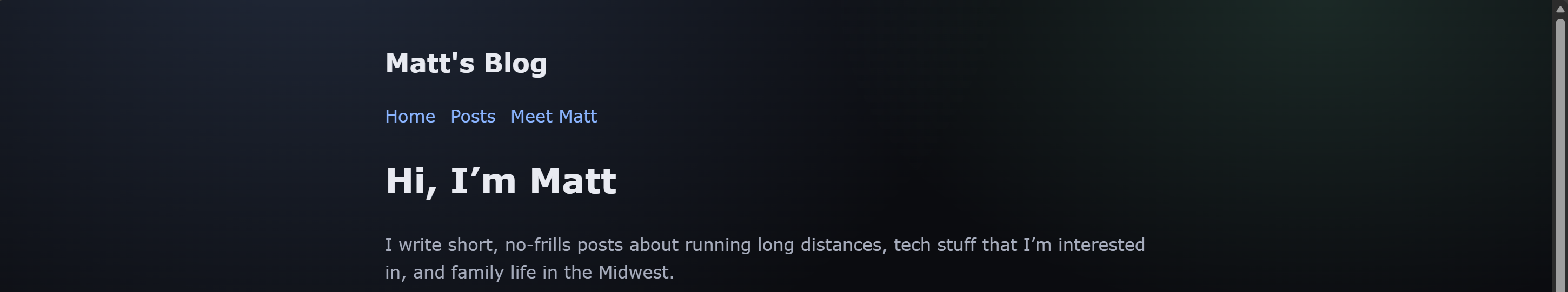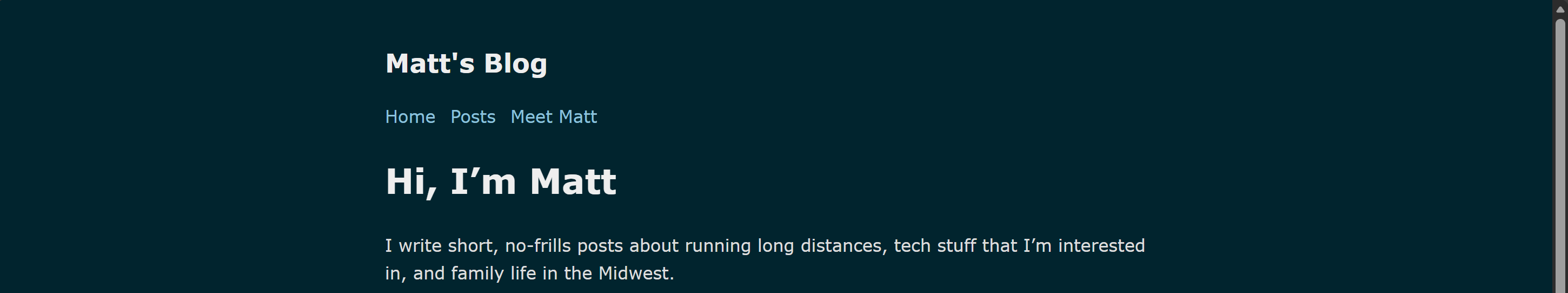 Then the rub–the new site links to blog.matthewcanderson.com which is a Hugo site, which makes sense for a blog, but now navigating to the blog looks just different enough that I wanted to modify the theme.