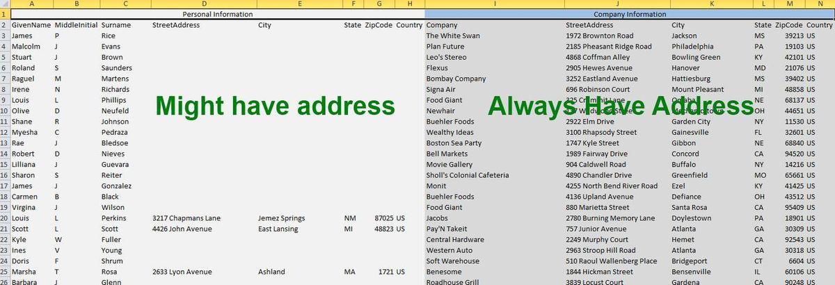 Let’s imagine you’re working with a list of Contacts that lists the company that they work at, doing a little clean-up before it gets used. Â Only some of the Contacts have an address listed, but they all have a Company address listed. Â This needs to be updated so each Contact record has an address.